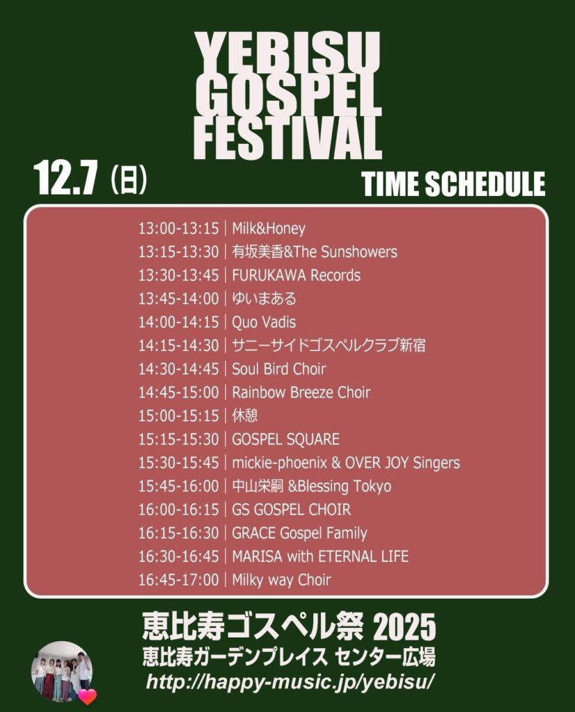『恵比寿ゴスペル祭2025』がいよいよ今週末に迫ってきました!!